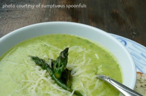 Heat 1/2 cup broth in a large pot over medium-high heat. Reduce heat to medium, add leek and cook, stirring often, until tender, about 6 minutes. Add remaining broth and potatoes and bring to a boil. Stir in asparagus and broccoli and return to a boil. Reduce heat to medium-low and simmer gently until vegetables are tender, 15 to 20 minutes. Remove pot from heat and set aside to let cool slightly.
