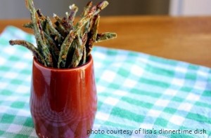 Preheat oven to 425 degrees. Place green beans in a mixing bowl and toss with the olive oil until beans are well coated. Sprinkle remaining ingredients over the beans and toss until well coated. Place in a single layer on a baking sheet coated with cooking spray. Bake for 15-17 minutes until caramelized and crispy. (mine took the full 17 minutes)