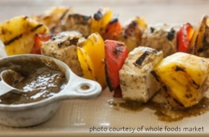 Tofu Veggie Skewers with Pineapple Mango Jerk Sauce
