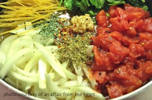 Place all ingredients in your pot. Make sure to give it a stir so the liquid covers the pasta and veggies. Place a lid on your pot and cook, on your stove, on high until it begins a rapid boil. Uncover and turn flame to medium. Continue cooking for 15 minutes more, pasta will absorb the liquid. Stir occasionally so pasta doesn’t stick to the bottom of the pan. DO NOT DRAIN. Serve, top it with a little fresh grated Parmesan cheese.
