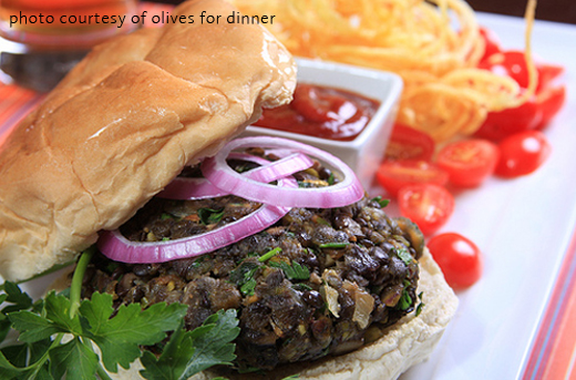 Black Lentil, Pistachio and Shiitake Mushroom Burger Recipe courtesy of Olives for Dinner