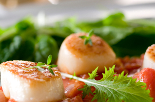 3. Sear the scallops quickly in a saut© pan. Keep them warm in the oven.