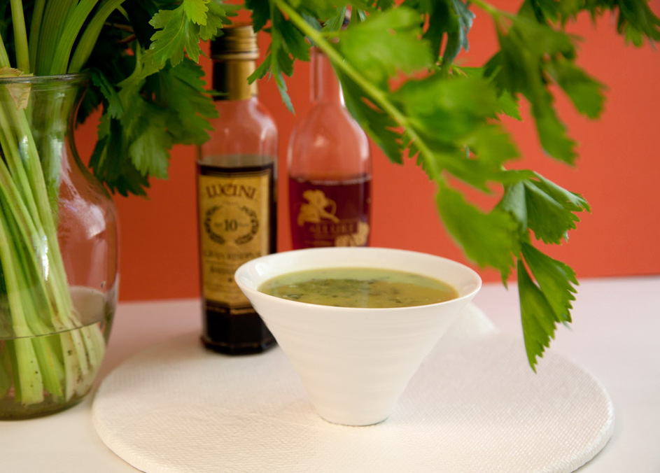 Soup Pot: sauté chopped shallots, garlic, celery, and asparagus tops in coconut oil, add balsamic vinegar