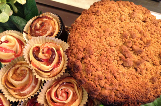 - Sprinkle crumb topping over cake.